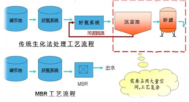 MBR同傳統(tǒng)生化工藝對比圖
